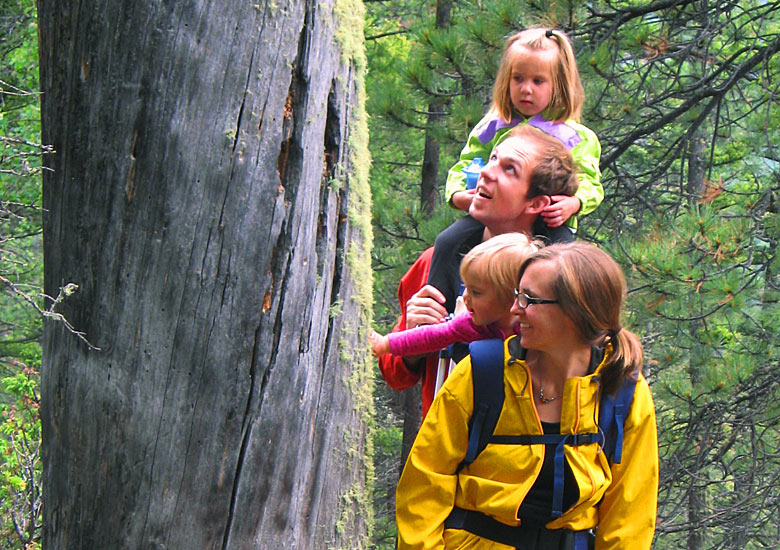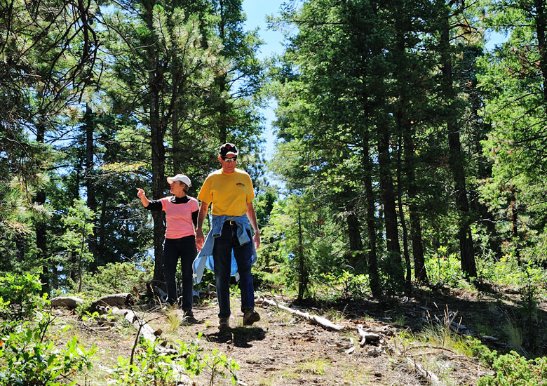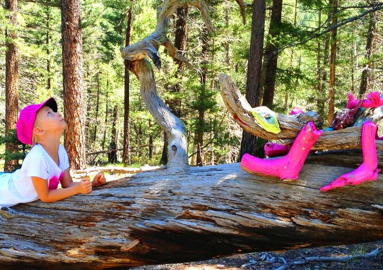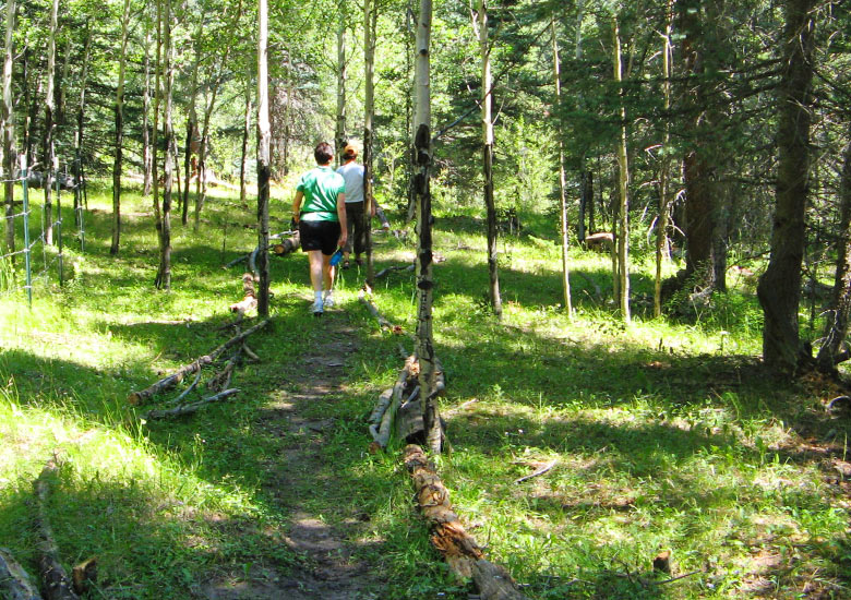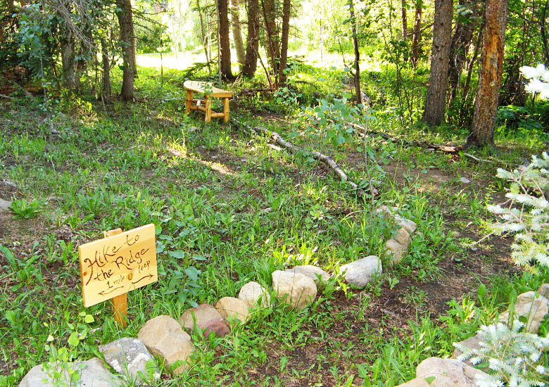Several Nature Trails are now complete at Red Cloud Ranch, almost 3 miles altogether. One, the Hike to the Ridge, is a one mile loop to our lookout. One takes you along the year-round stream, to talk about riparian zones, and the others are meandering loops on the rolling hills. All the trails are chock full of interpretive signs about the local birds, native shrubs, berries, trees, lichen, geology, mountain peaks, wildlife habitat and other lore including lightning strikes and animal tracks. There is even a stopping point for possible eagle sightings.